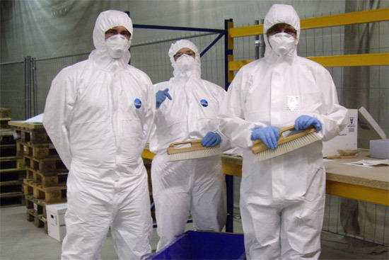Die Mitarbeiter des Archivs der Freien Universität in Köln im Einsatz: Frank Lehmann, Birgit Rehse, Irene Jentzsch (v.l.n.r.)