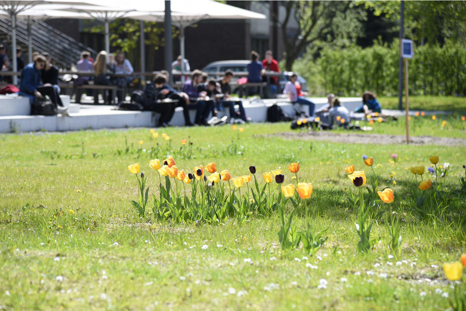 Was für's Auge und den Rüssel: Die Blumenwiese vor der vegetarischen Mensa zeigte sich im Frühjahr in voller Pracht.