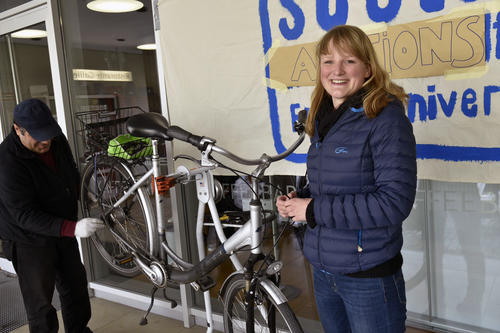 Zwei Tage lang hatte die kleine Fahrradwerkstatt, ausgestattet mit Werkzeug und den wichtigsten Ersatzteilen, vor der Silberlaube der Freien Universität geöffnet. Besonderen Zulauf hatte das Repair-Café in der Mittagszeit, wenn viele auf dem Weg in die Mensa oder Cafeteria waren. Schon während des ersten Tages seien knapp 15 Fahrräder wieder in Schuss gebracht worden, erzählt Carolin Bergmann, die als studentische Hilfskraft für SUSTAIN IT! arbeitet. Sie hat das Projekt – eine Kooperation mit dem Repair-Café Schöneberg II – ins Leben gerufen.