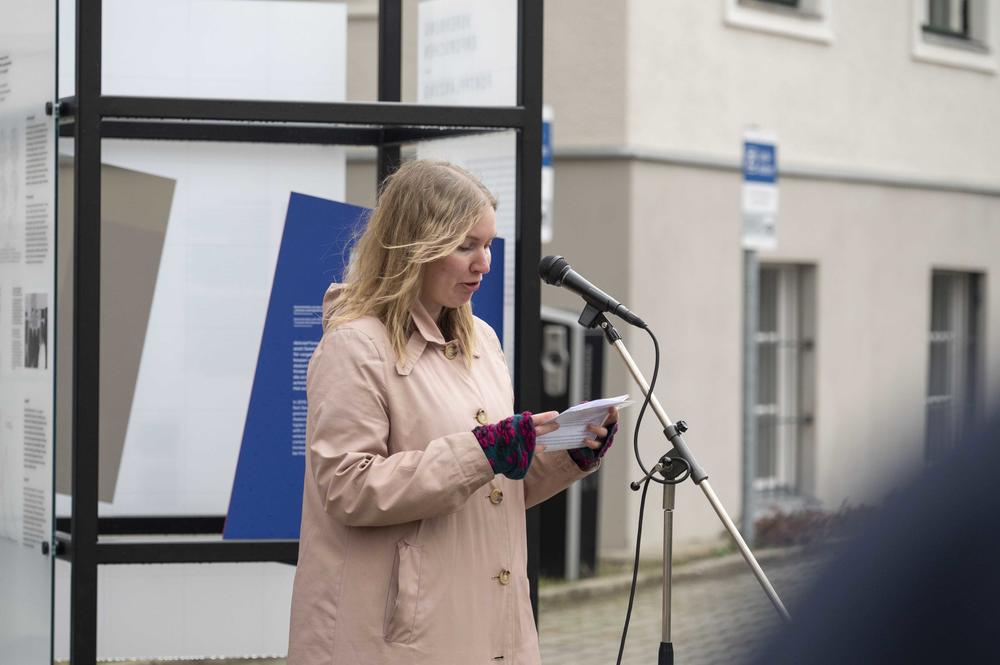 Die Historikerin Dr. Manuela Bauche hat die Ausstellung „Erinnerungsort Ihnestraße“ kuratiert. Bei der Gedenkveranstaltung erinnerte sie an die Schwestern Luzie und Cäcilie Borinski.