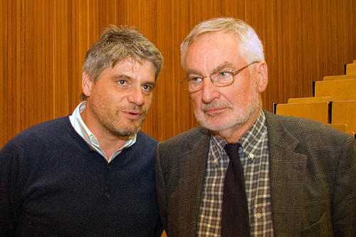 An einem Gedicht des französischen Poeten François Villon demonstrierte Schrott, was er unter poetischer Interpretation versteht – und was er von den Studenten seines Seminars "Weltliteratur und Poetik" an der Freien Universität erwartet. Gert Mattenklott, Professor am Peter-Szondi-Institut für Allgemeine und Vergleichende Literaturwissenschaft, an dem die Samuel-Fischer-Gastprofessur angesiedelt ist, bedankte sich bei Schrott und Pöppel mit dem Wunsch, "das Duo als Lehrtandem" auch in Zukunft an der Freien Universität wieder einmal begrüßen zu dürfen.