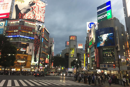 Die große Kreuzung in Tokios Bezirk Shibuya können Fußgänger in alle Richtungen gleichzeitig überqueren.