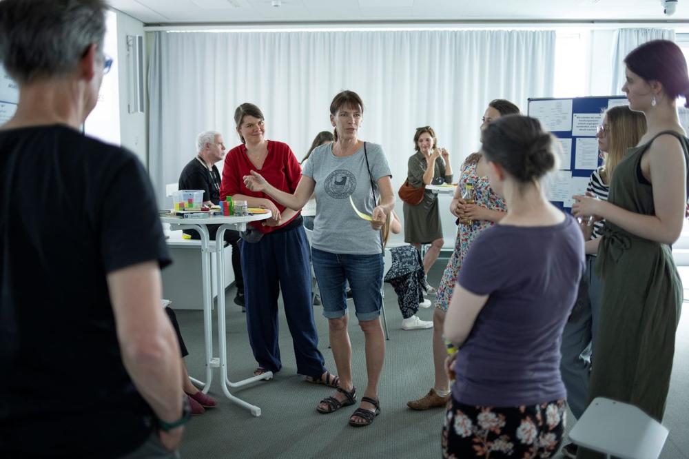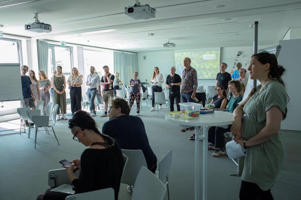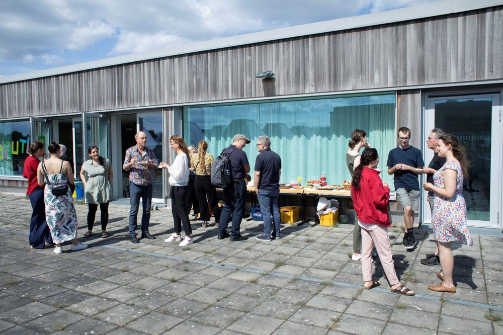 Those who were able to stay enjoyed the get-together on the roof terrace of the Holzlaube, where they had the opportunity to exchange ideas with the project teams.