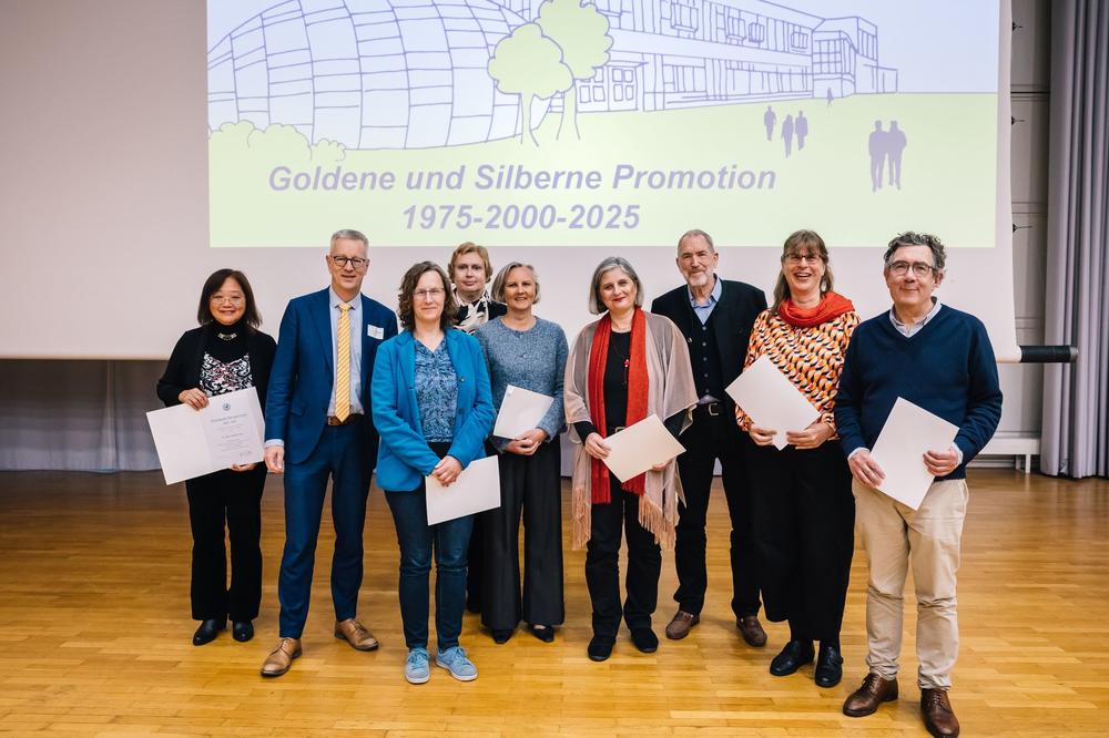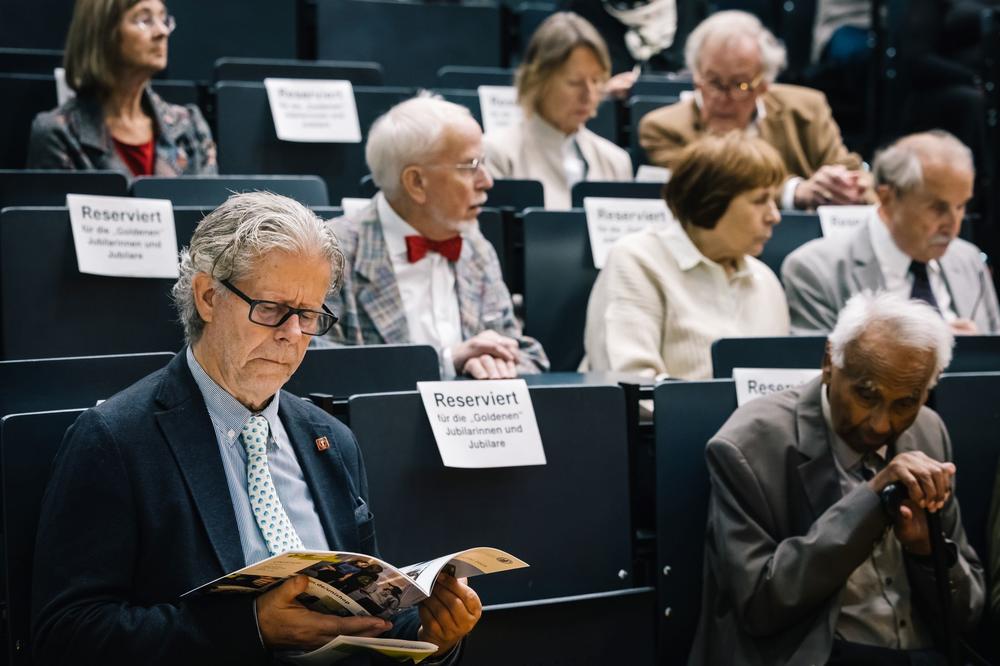 Am 10. Oktober 2025 fand die Feier der Goldenen und Silbernen Promotion 1975 - 2000 - 2025 statt. Der Präsident der Freien Universität Berlin, Professor Dr. Dr. h.c. Günter M. Ziegler begrüßte die Jubilarinnen und Jubilare im großen Hörsaal in der Rost- und Silberlaube zum Festakt und zur feierlichen Urkundenübergabe.