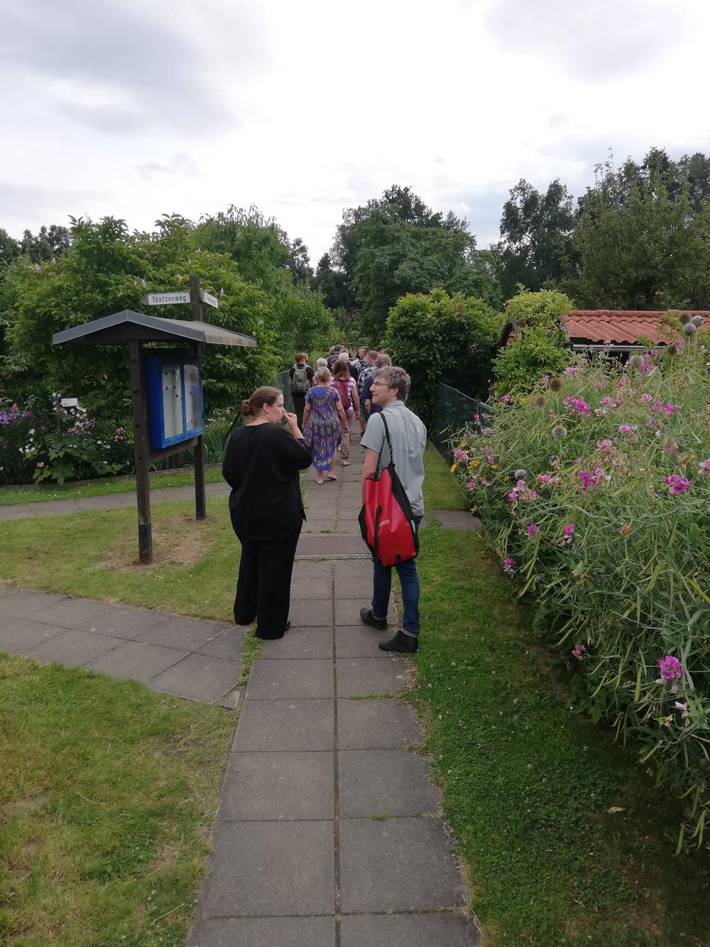 Anschließend gab Lena Assmann von der Grünen Liga Berlin wertvolle Informationen und Hinweise in das Thema Mulchen. Außerdem erhielten die sehr interessierten Teilnehmenden bei einer Führung durch die Kolonie Bäketal durch Vorstand Klaus-Jürgen Sparfeld Einblicke wie das Thema naturnahes, ökologisches und klimaresilientes Gärtnern hier umgesetzt wird.
