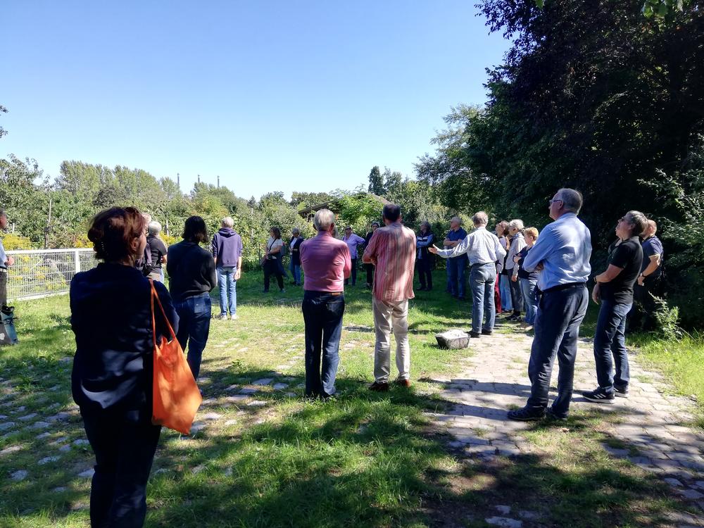 Dass viel Wissen im Bezirk vorhanden ist, wurde auch bei dem gemeinsamen Rundgang durch die benachbarte Öko-Kolonie Wildkraut e. V. und die Kolonie Erbkaveln deutlich. Hier konnten sich die Teilnehmenden am praktischen Beispiel über naturnahes, ökologisches und klimaangepasstes Gärtnern informieren und über Themen wie Wassermanagement, Kompost und Schädlingsbekämpfung austauschen.